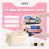 - Túi JARY da PU giúp tránh ánh nắng, độ ẩm làm hỏng mỹ phẩm.